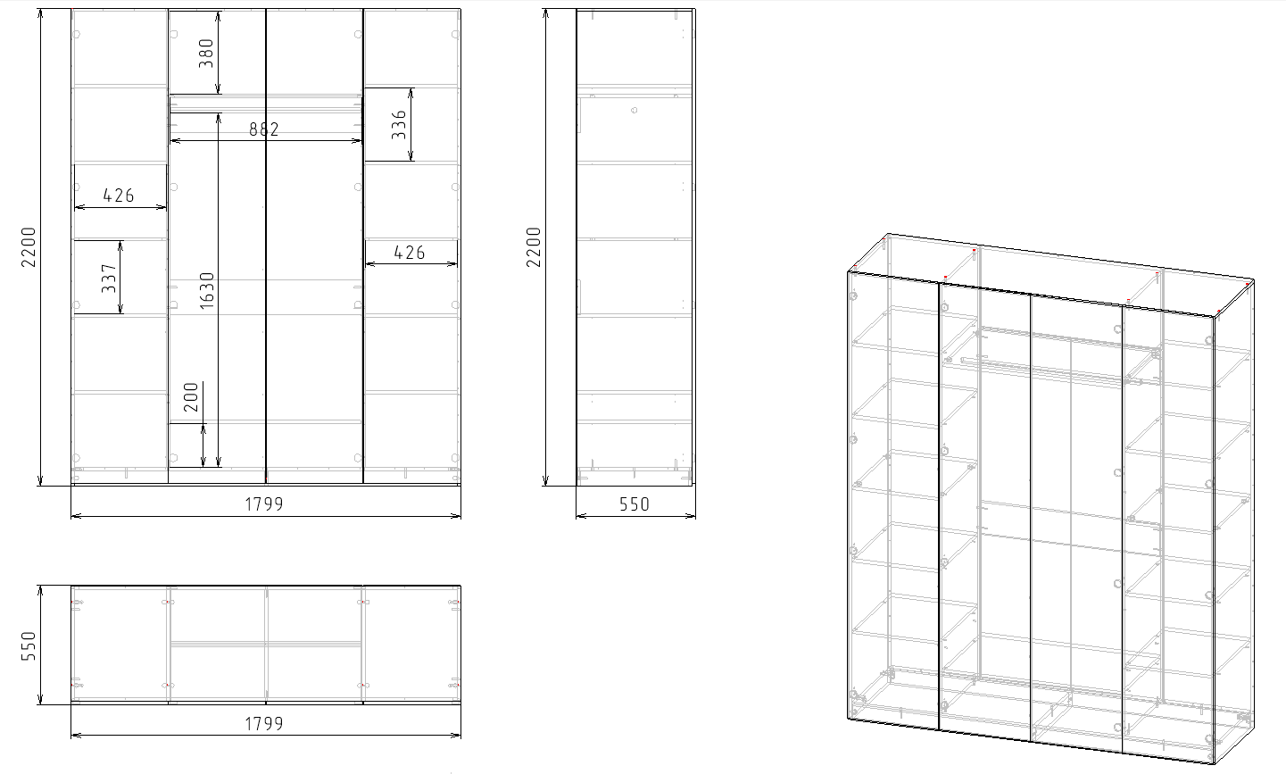 Четырехъдверный распашной шкаф - функциональное решение для хранения одежды, обуви и аксессуаров.