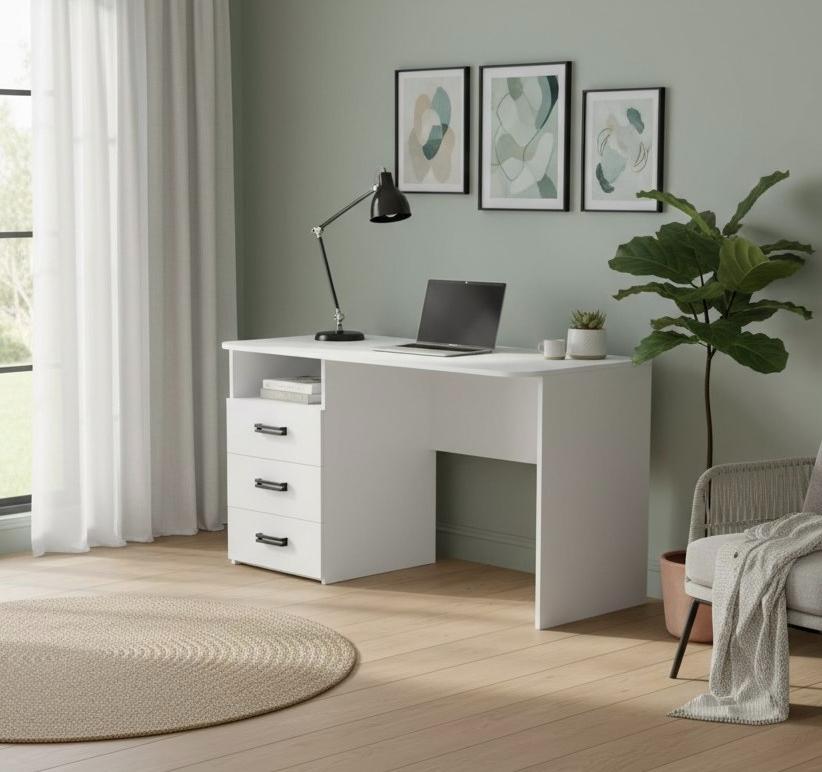 В стол встроены три выдвижных ящика на шариковых направляющих.