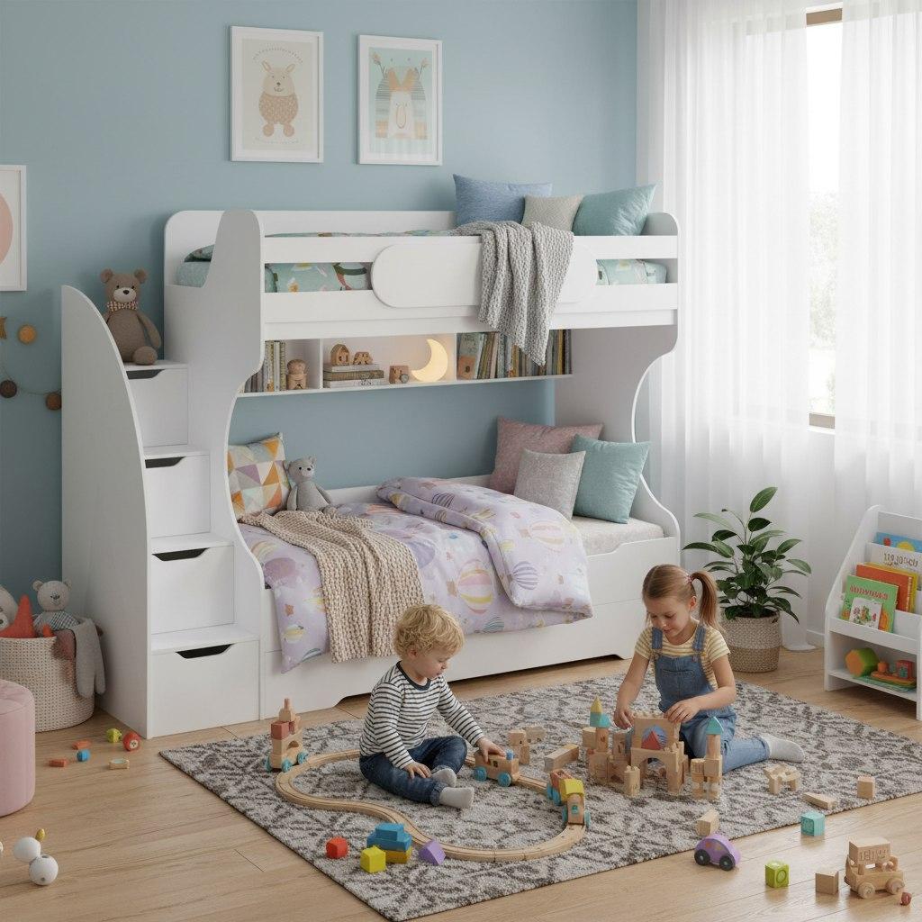 Увеличенное, просторное нижнее спальное место позволяет комфортно разместиться ребенку вместе со взрослым.