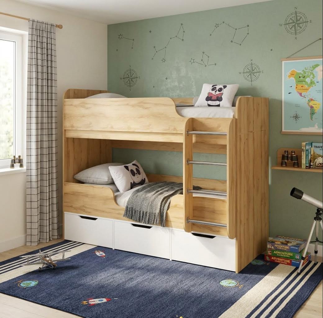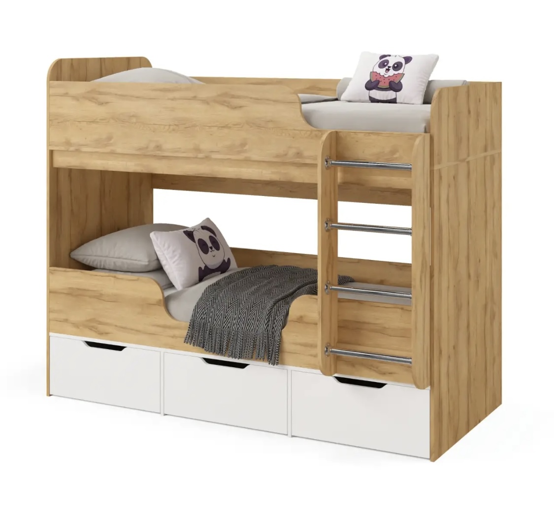 Прочная конструкция кровати выдерживает нагрузку до 90 кг на каждое спальное место.