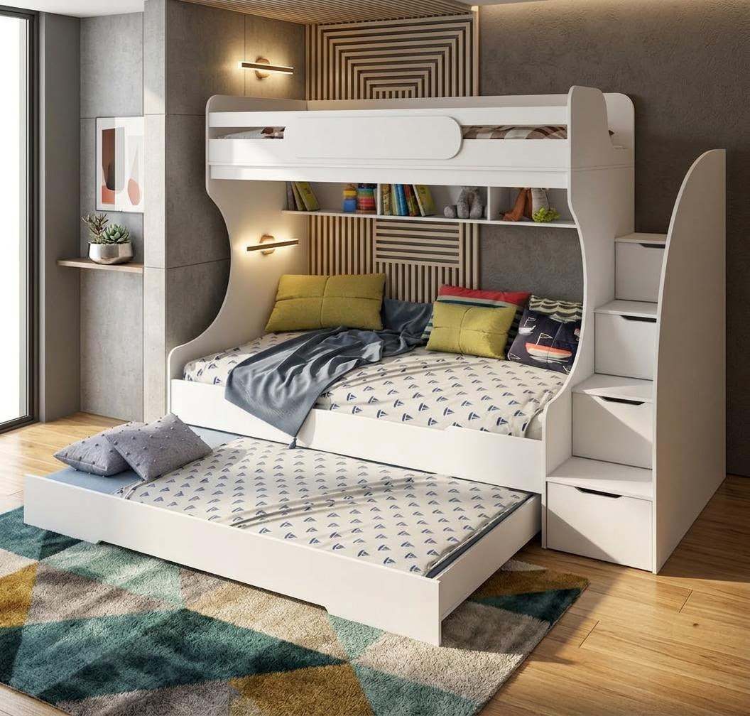 Вместо них - цельный и прочный настил из ЛДСП, который выдерживает сверхвысокую нагрузку и позволяет расположиться даже взрослому с ребенком.