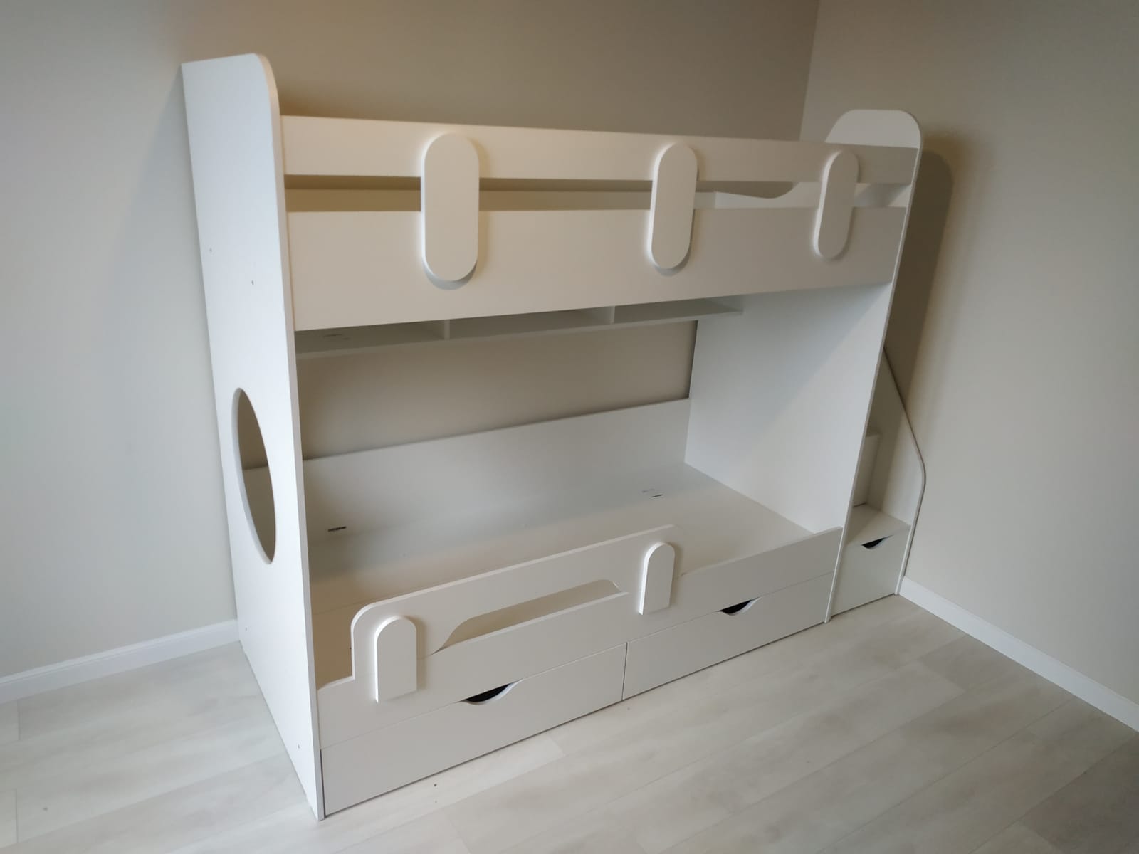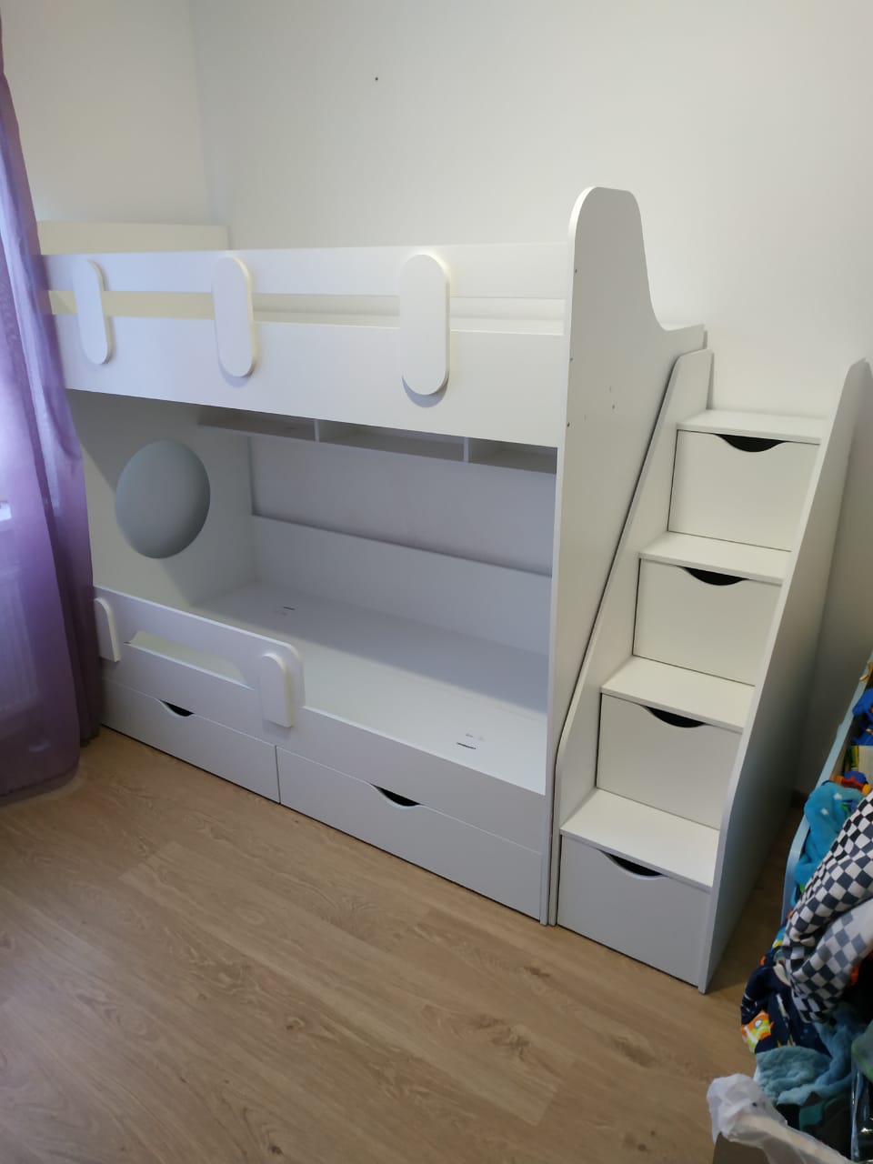 Основание кровати – прочный настил ЛДСП (НЕ РЕЙКИ!), который позволяет ребенку спать на ровной поверхности, что важно для детской спины.