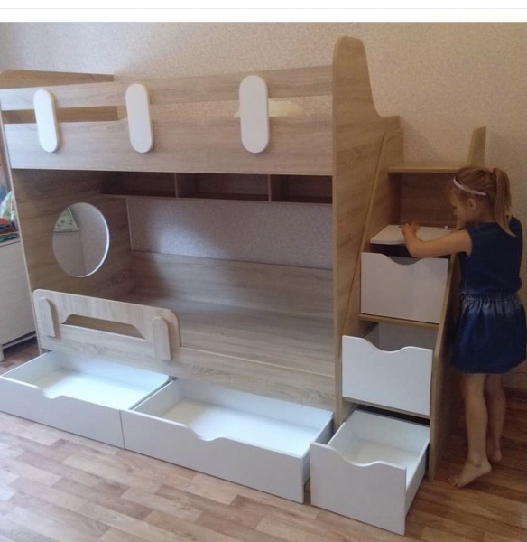 Вместо них - цельный и прочный настил из ЛДСП, который выдерживает сверхвысокую нагрузку и позволяет расположиться даже взрослому с ребенком.