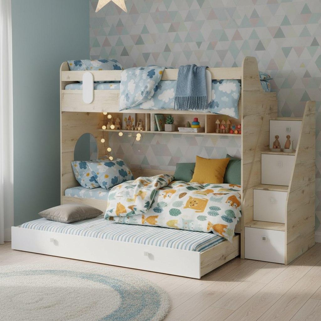 Вместо них - цельный и прочный настил из ЛДСП, который выдерживает сверхвысокую нагрузку и позволяет расположиться даже взрослому с ребенком.