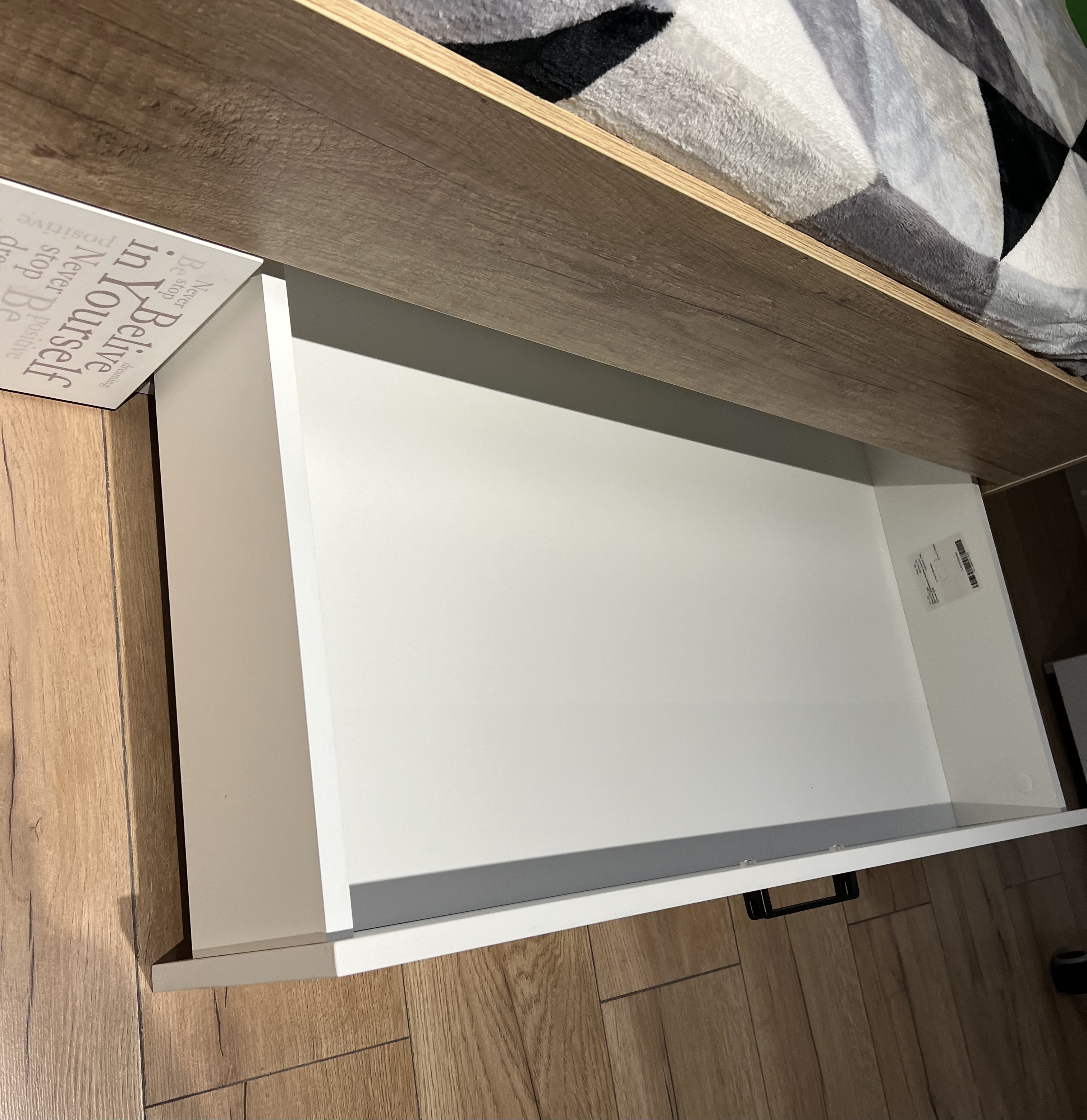Дно ящиков прочное - выполнено из ЛДСП 16 мм (не ДВП!), нагрузка на каждый ящик до 45 кг.