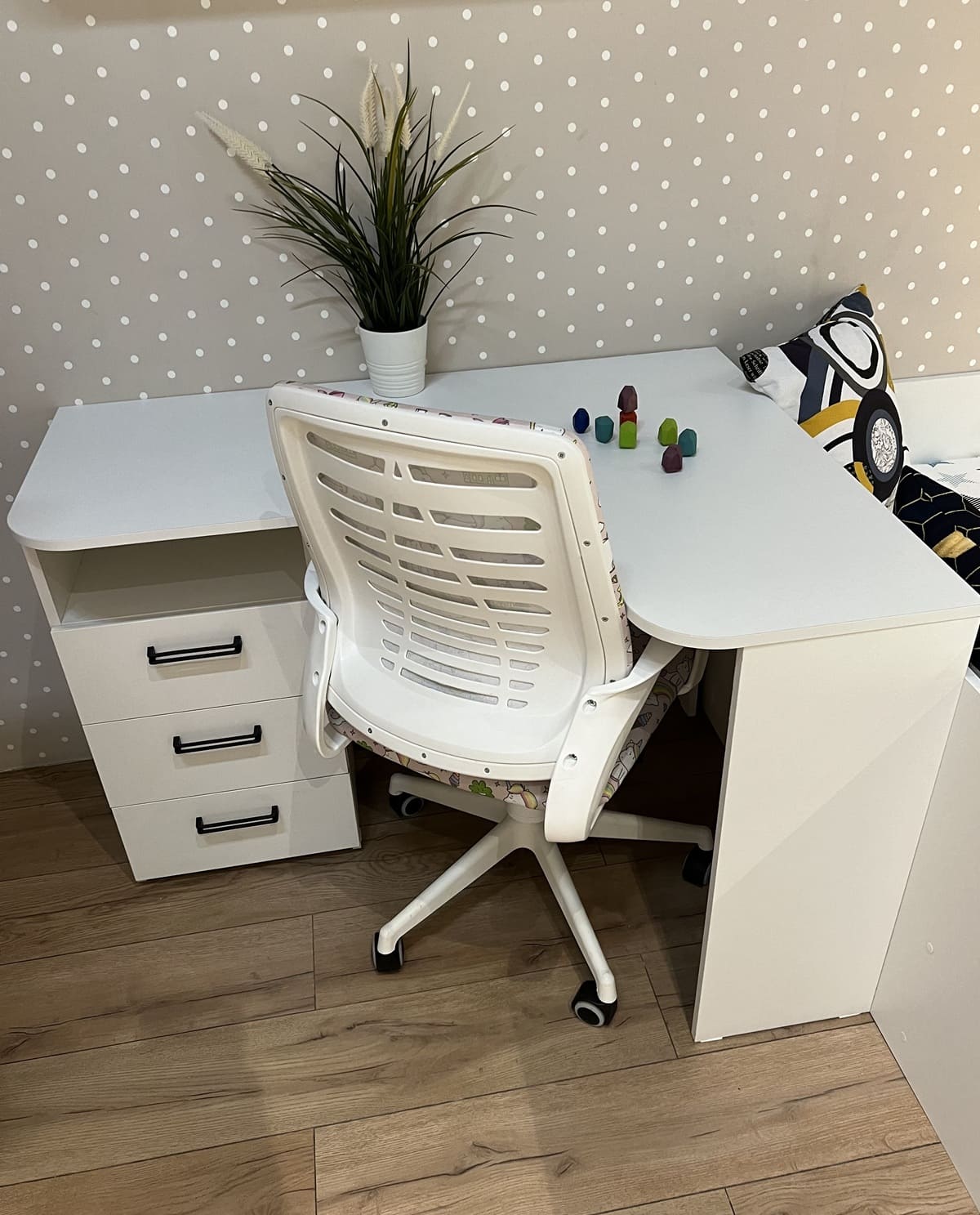 Мебель выполнена из сертифицированного, качественного, экологически чистого ЛДСП класса Е0,5 в белом цвете.
