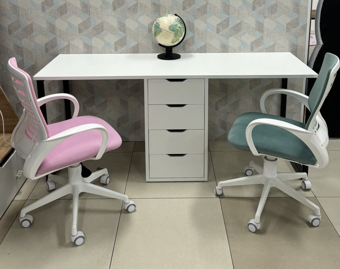 Стол Дуэт 2000 мм (белый + опоры белые). Столешница 22 мм от Династия Kids