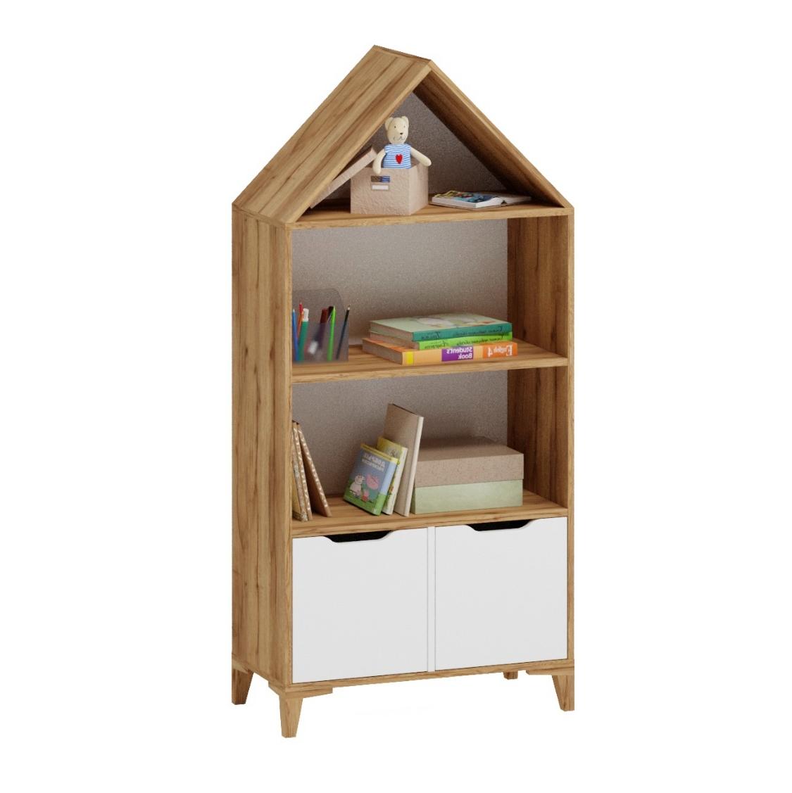 Стеллаж в виде домика - оригинальное и практичное дополнение в интерьере детской комнаты.