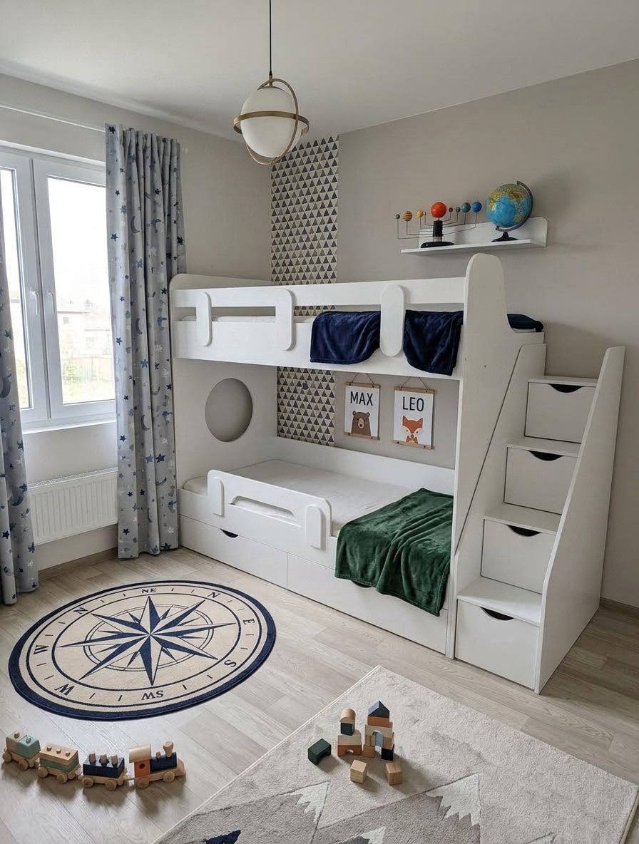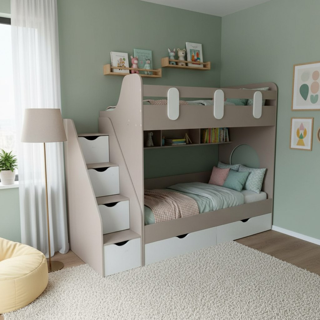 Выдвижные ящики в нижней кровати изготовлены с применением метабоксов, что делает изделие практичным и надежным.