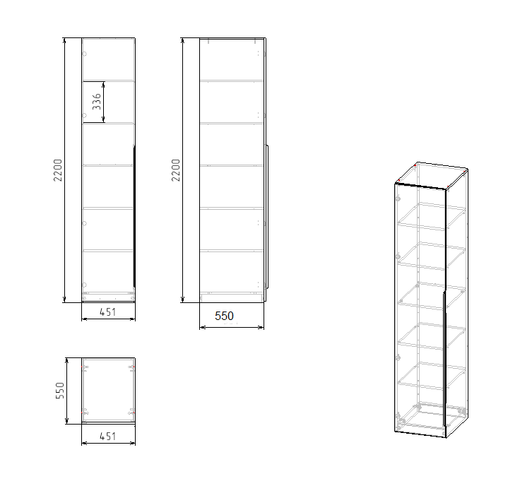 ширина 451 х высота 2200 х глубина 550 мм
