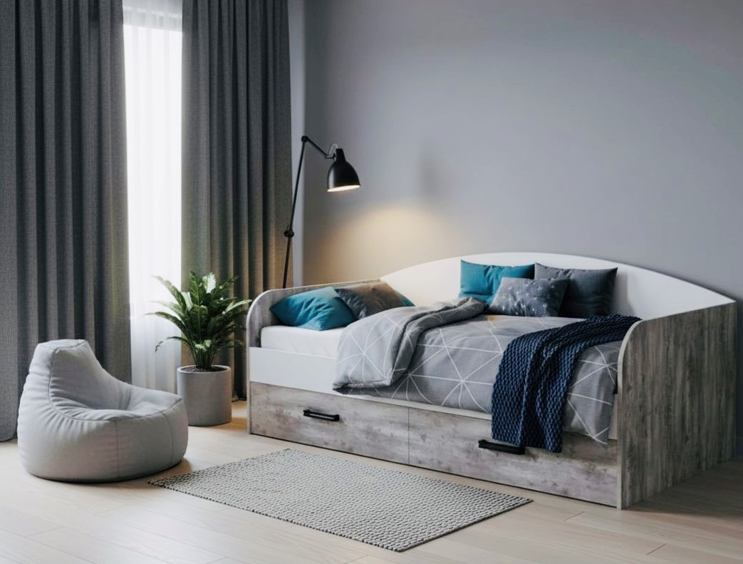 Данная модель кровати выполнена в современном дизайне, превосходно дополнит интерьер детской или молодежной комнаты.