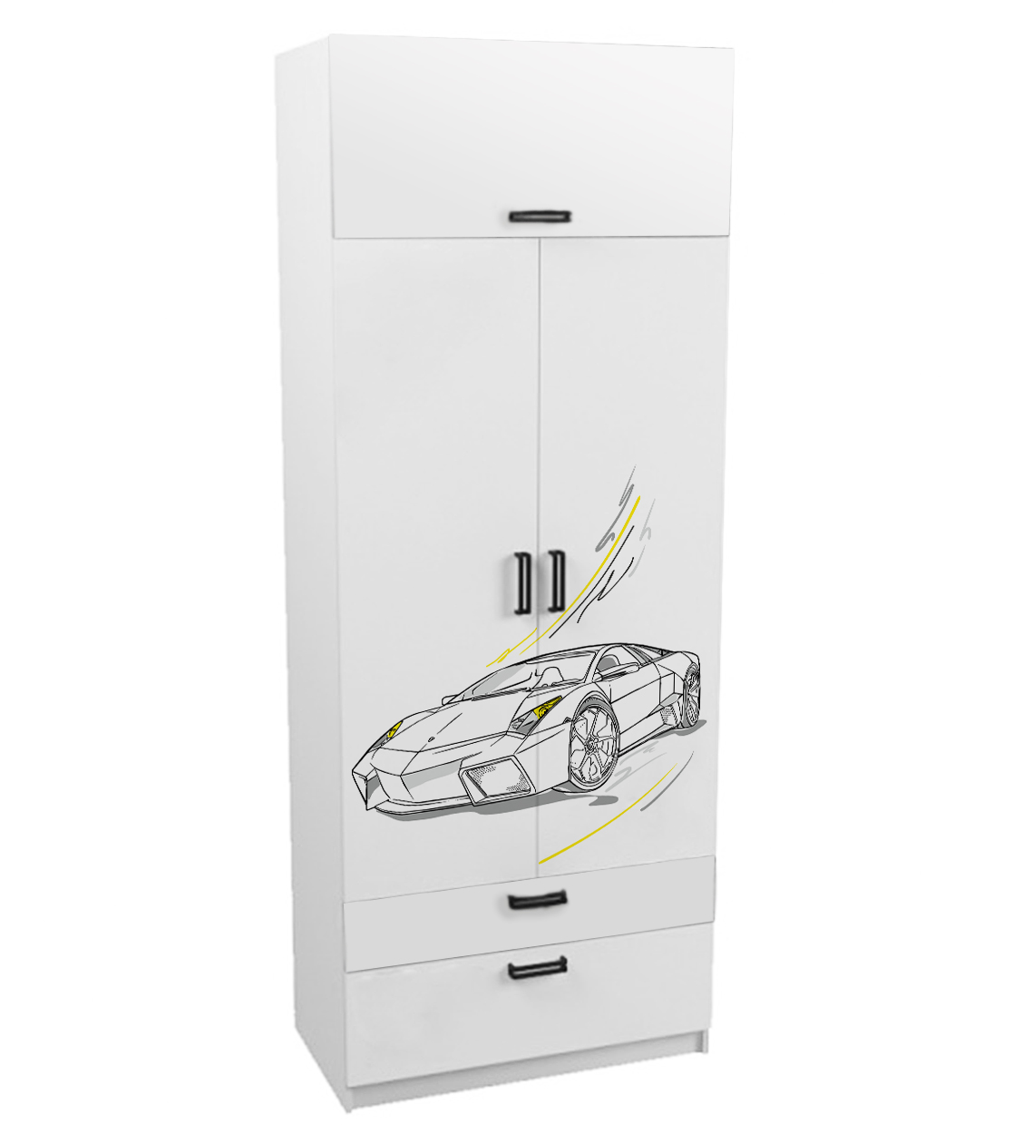 Мебель выполнена из сертифицированного, качественного, экологически чистого ЛДСП класса Е0,5 в белом цвете и оформлена дизайнерским принтом.