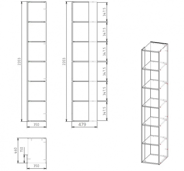 Габариты: ширина 350 х высота 2203 х глубина 479 мм
