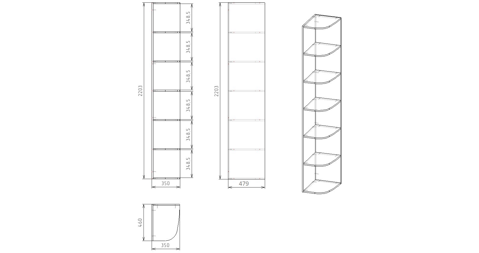 Габариты: ширина 350 х высота 2203 х глубина 479 мм