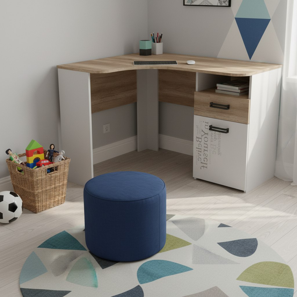 Мебель выполнена из сертифицированного, качественного, экологически чистого ЛДСП класса Е0,5 в сочетании цветов "дуб каньон + белый" и оформлена дизайнерским принтом.
