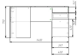 Габариты стола: ширина 1400 х высота 750 х глубина 1200 мм