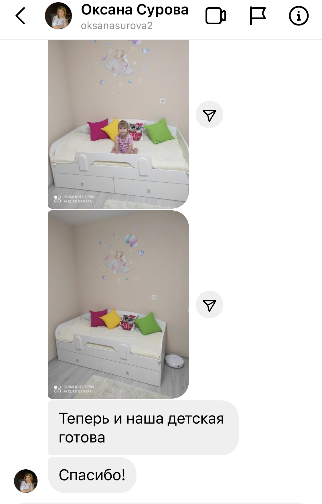 Оплата за мебель производится до момента ее отправки в транспортную компанию.