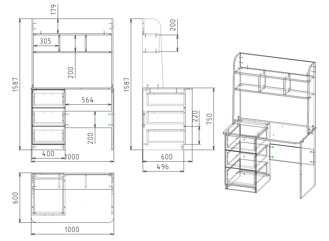 Габариты: ширина 1000 х высота 1550 х глубина 600