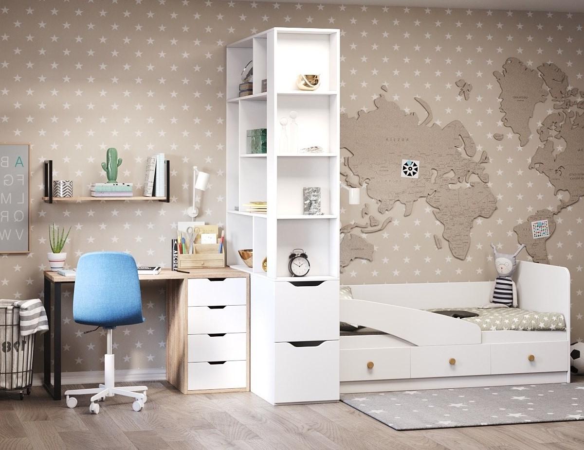 Кровать Умка 190х90 + стеллаж-перегородка для зонирования