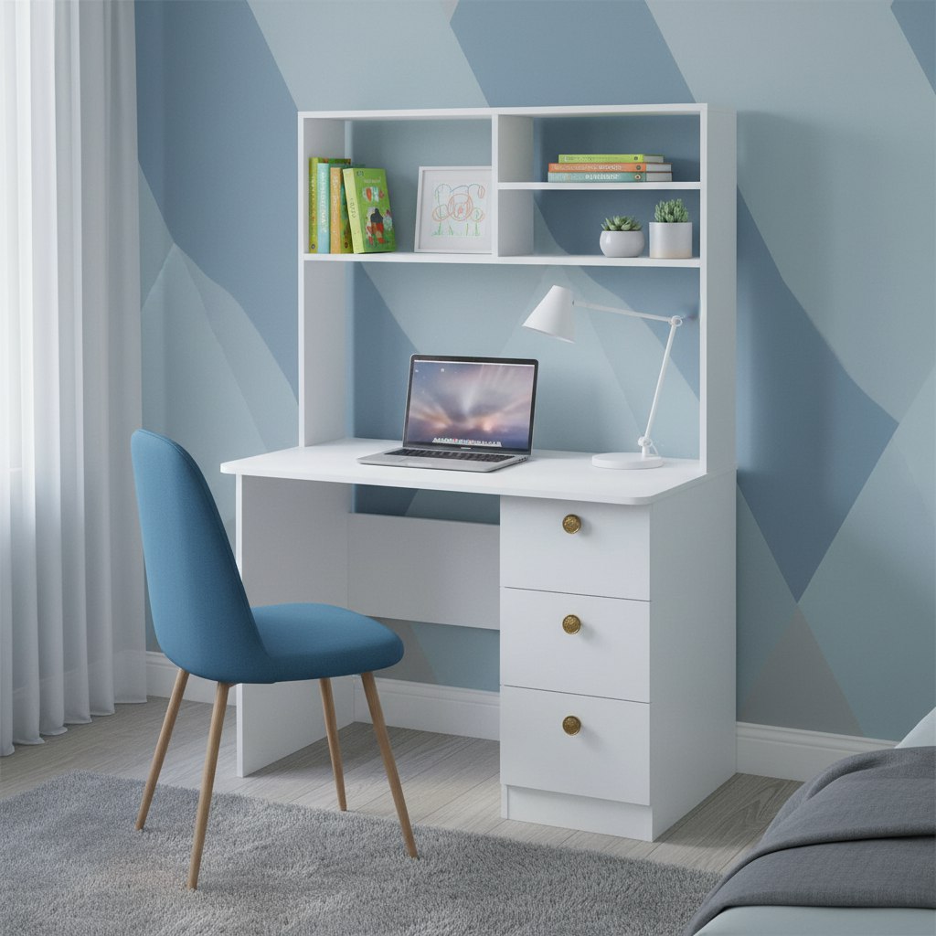 —Комплект мебели: стол Умка + стеллаж Мозаика + кровать Двушка