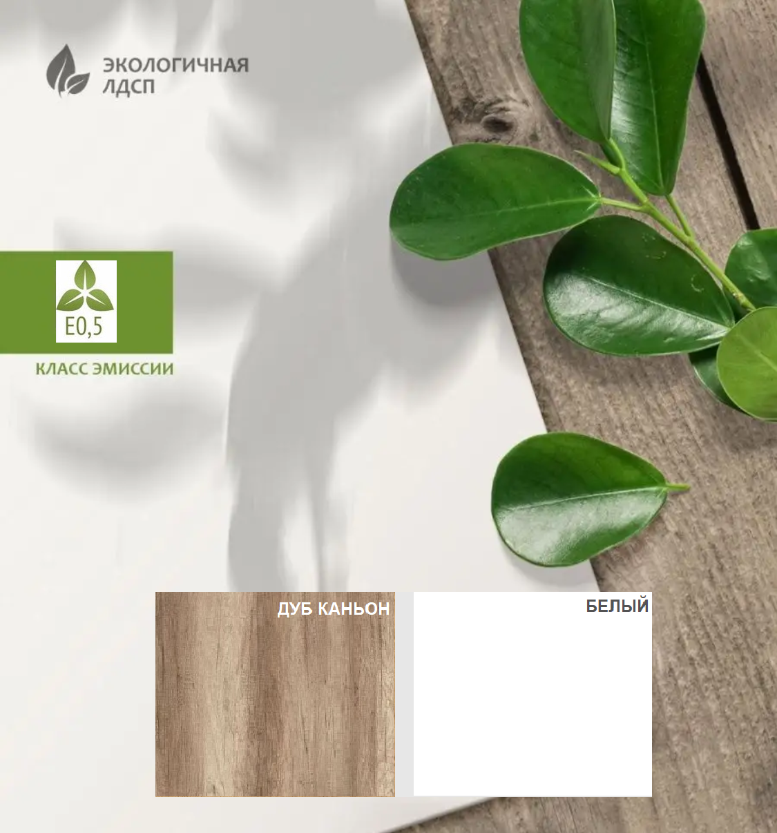 Мебель изготовлена из сертифицированного, качественного, экологически чистого ЛДСП класса Е0,5 в сочетании цветов дуб каньон с белым.