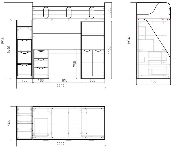 Размер: ширина 2242 х глубина 859 х высота 1934