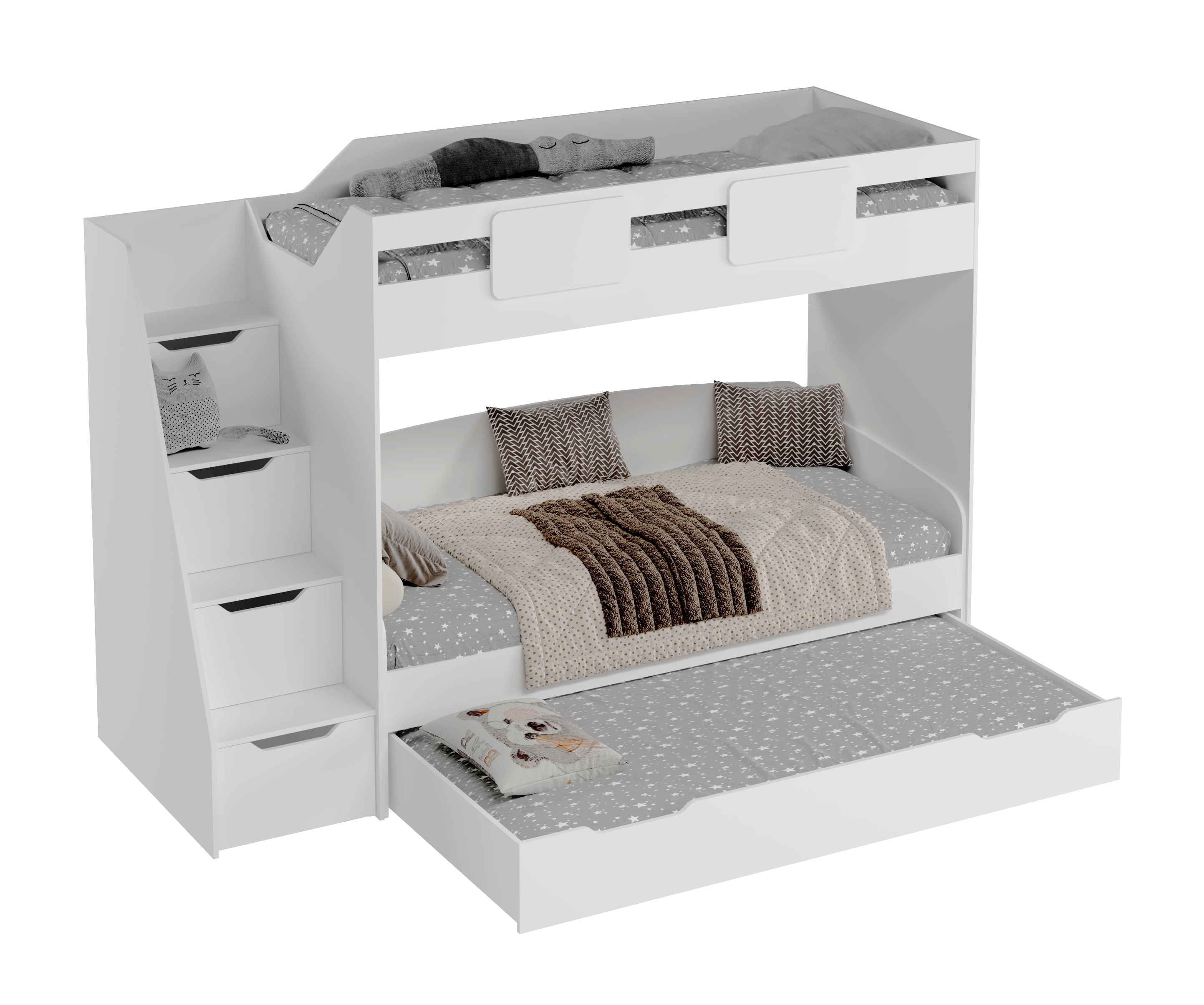 Кровать-чердак Мозаика-2 + кровать Двушка в белом цвете