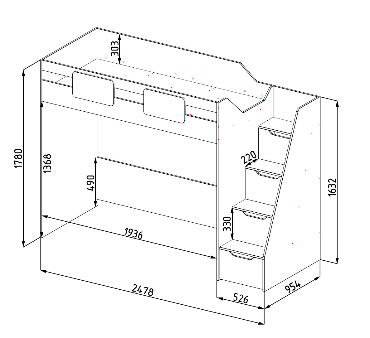 Спальное место верх: 190 х 90 см - нагрузка на спальное место до 150 кг