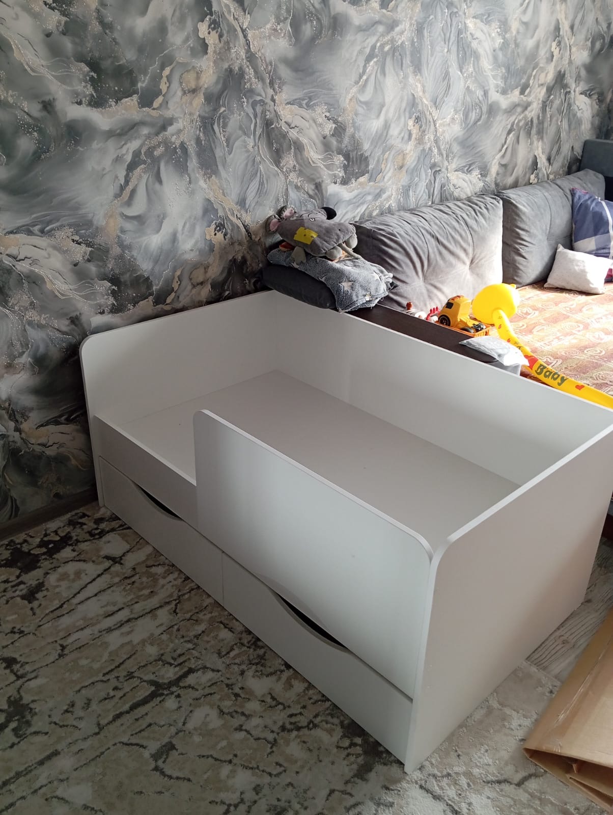 Защитный бортик предохранит ребенка от падения.