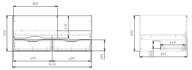 Габариты кровати: ширина 1436, высота 650, глубина 855 мм