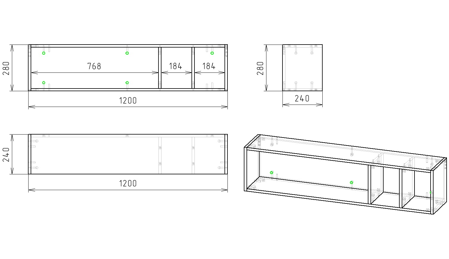 Габариты: ширина 1200, глубина 240, высота 280 мм