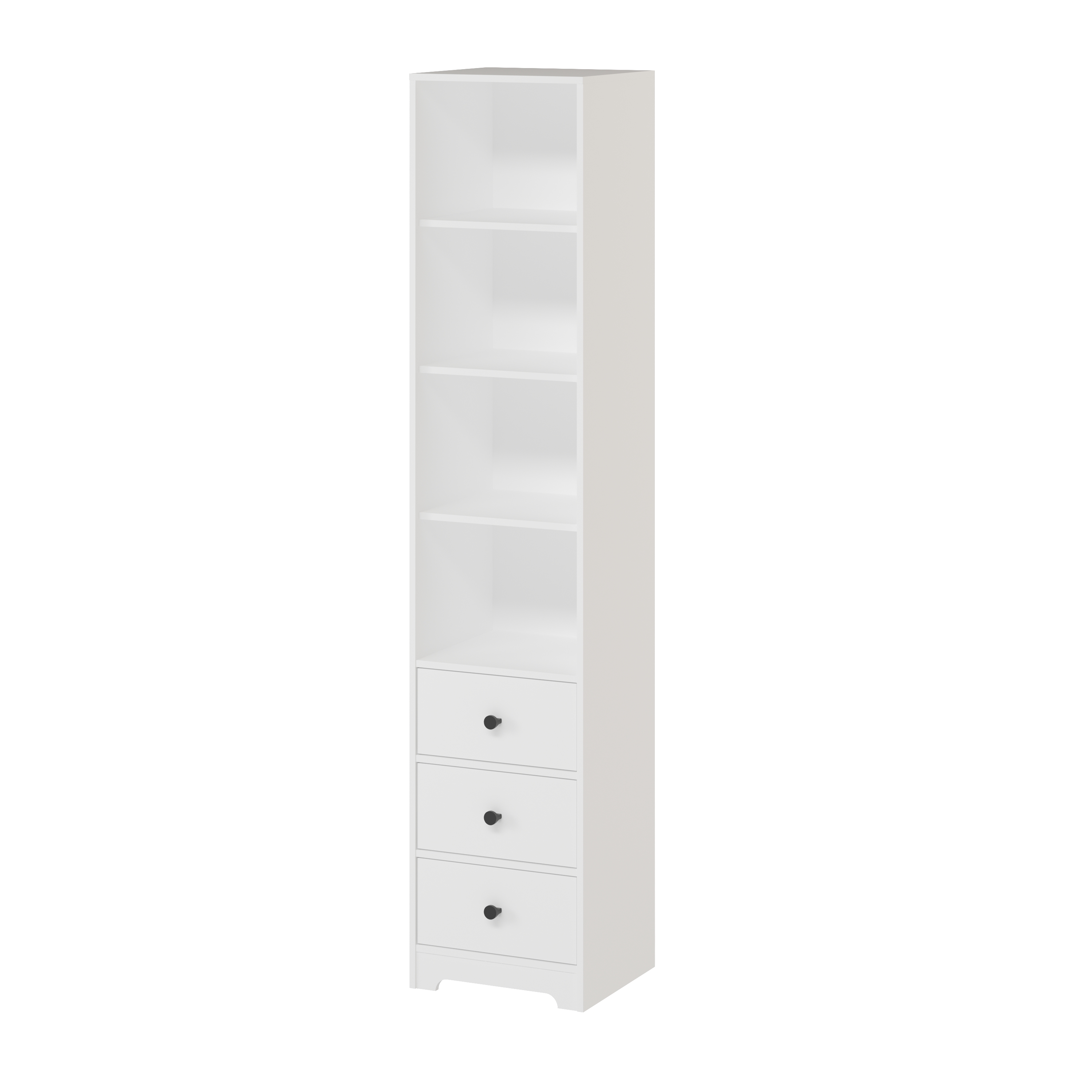 В пенал встроены три выдвижных ящика на направляющих скрытого монтажа с доводчиками.