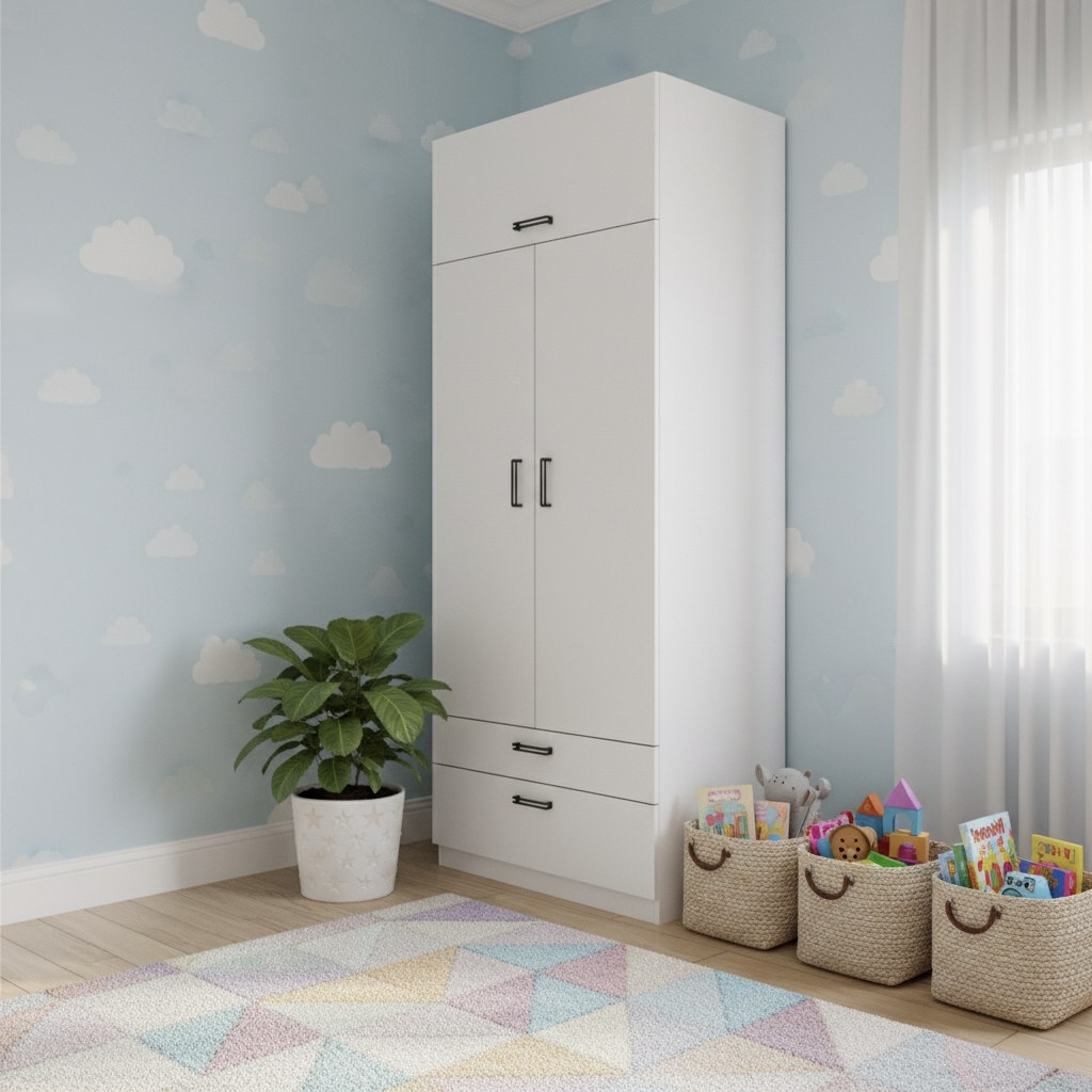 Идеально вписывается в детскую комнату, шкаф очень практичный и вместительный, по своим габаритам отлично подходит и для небольших комнат.