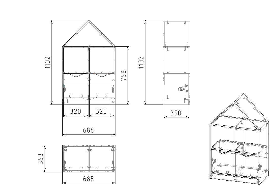 Габариты: высота 1102, глубина 350, ширина 688 мм