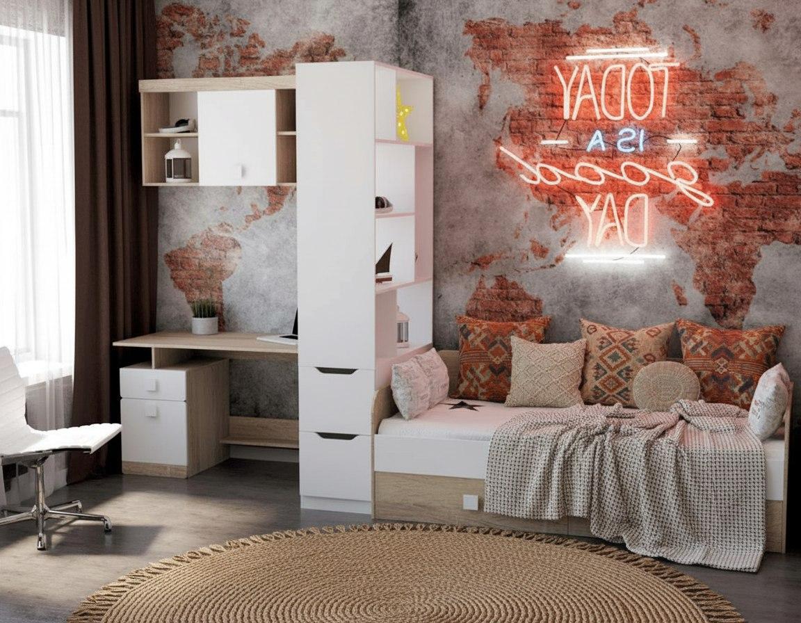—Стеллаж-перегодка + кровать + стол + полка коллекции Формат