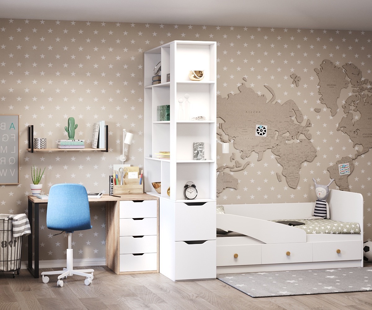 —Стеллаж-перегородка + стол Соло + кровать Умка