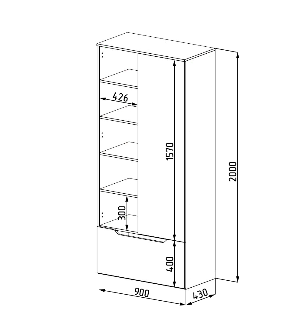 Габариты: ширина 900, высота 2000, глубина 453 мм