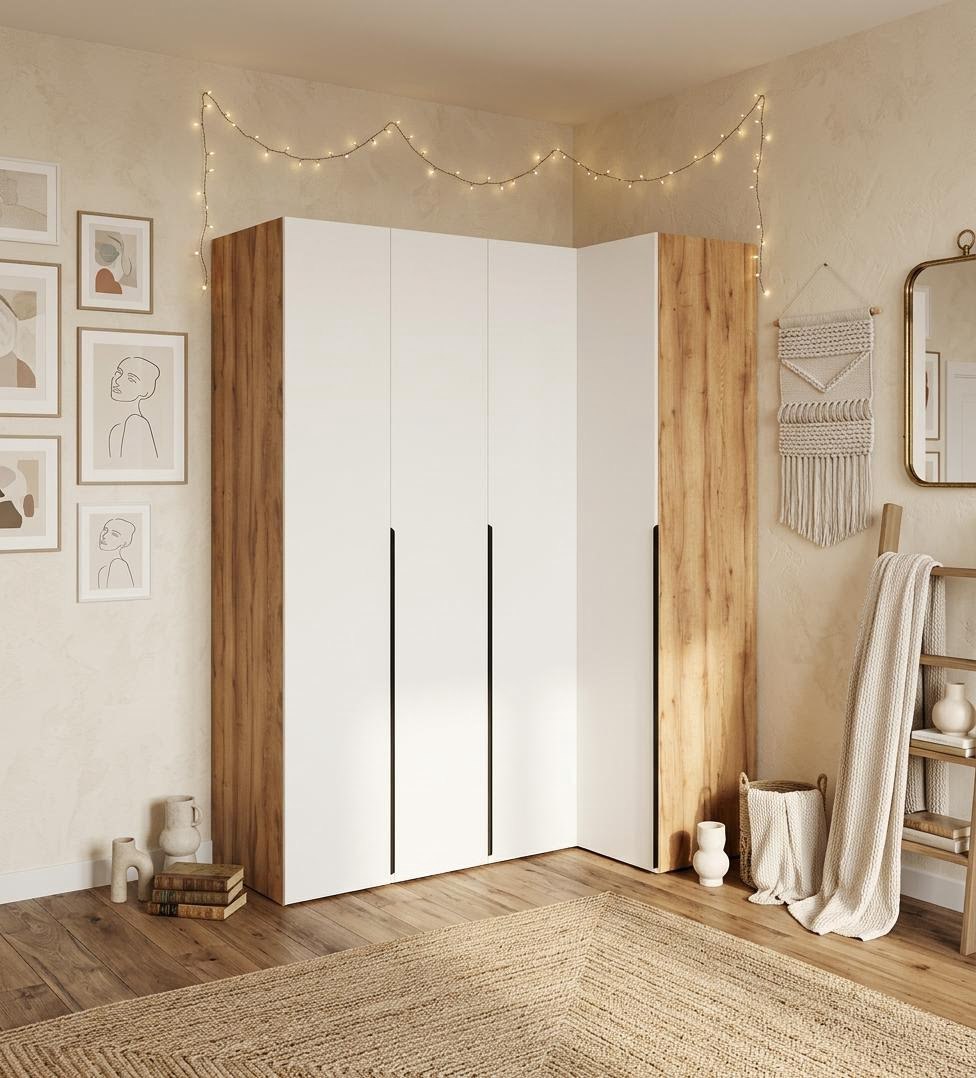 Распашной двухстворчатый шкаф + угловой шкаф + пенал коллекции Брайт Золотистый