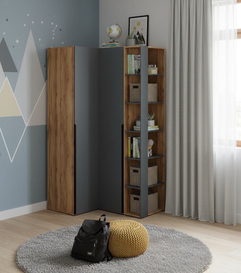Угловой шкаф + пенал + приставка торцевая коллекции Брайт Графит  от Династия Kids